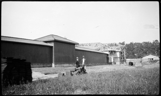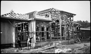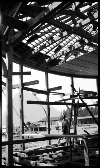 Operai sul cantiere per l'edificazione del lido di Lugano