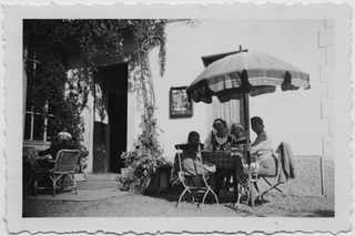Carla Lotti affacciata dalla loggia di casa Malfanti a Sonvico