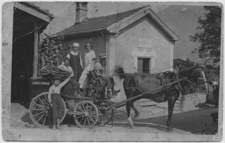Gruppo in posa con l'autopostale alla vecchia posta di Comano